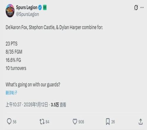 投篮35中8!文班也带不动!马刺三后卫要解体了