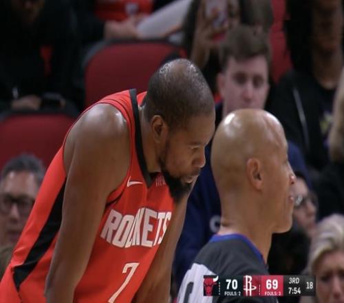 次节刚刚开始仅仅一分钟,火箭的防守出现了很大的问题,被公牛直接追平,乌度卡愤怒喊出暂停,质疑大家的态度。暂停回来,杜兰特失误,随后又进攻犯规,局面瞬间变得被动。申京回到场上,勾手、暴扣追平比分。双方你来我往,比分交替领先,半场比赛结束,火箭落后了3分。