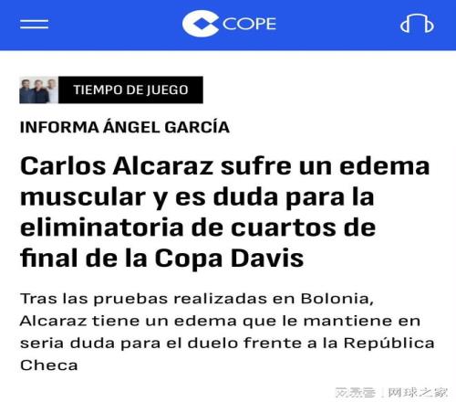 阿尔卡拉斯的退出给西班牙队的戴维斯杯前景蒙上了阴影。