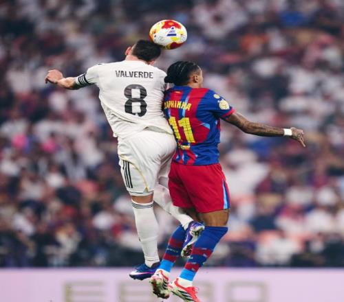 在上赛季的西超杯决赛,巴塞罗那5-2送给银河战舰一场耻辱性的失利问鼎冠军,为了能够实现卫冕的目标,弗里克此役也是毫无保留,祭出了433的体系,霍安加西亚镇守龙门,巴尔德、加西亚、库巴西和孔德构筑后防,佩德里、德容和费尔明坐镇中场,拉菲尼亚、莱万和亚马尔组成进攻三叉戟。