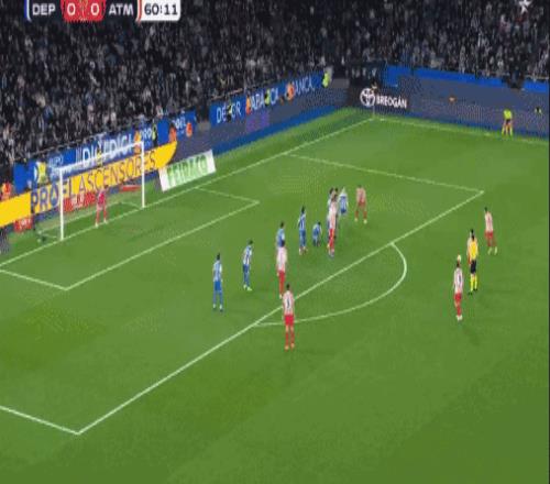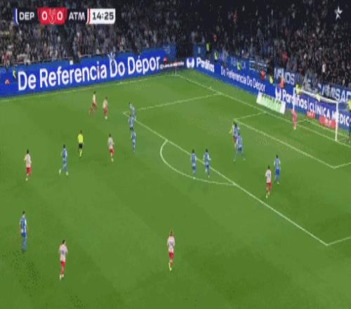 第61分钟,马竞打破僵局,格列兹曼离门18米外主罚定位球,打出一记完美的弧线,直挂球门右上角,拉科鲁尼亚门将甚至没有做出扑救动作,目送皮球入网,1-0!