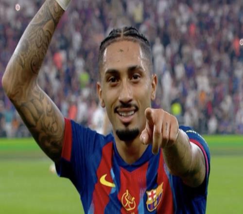 巴萨1-0领先!皇马中圈被断球,拉菲尼亚抽射远角破门